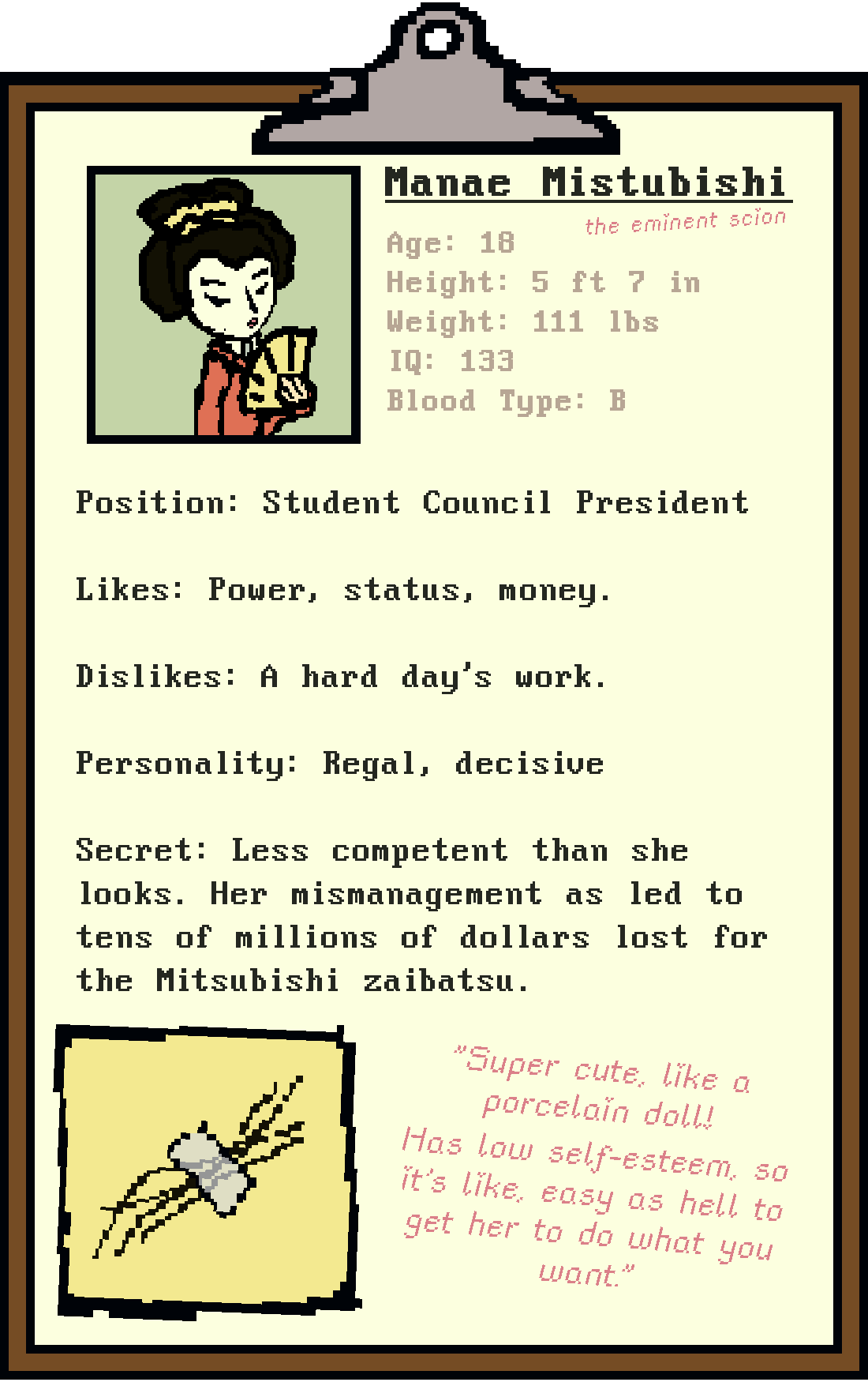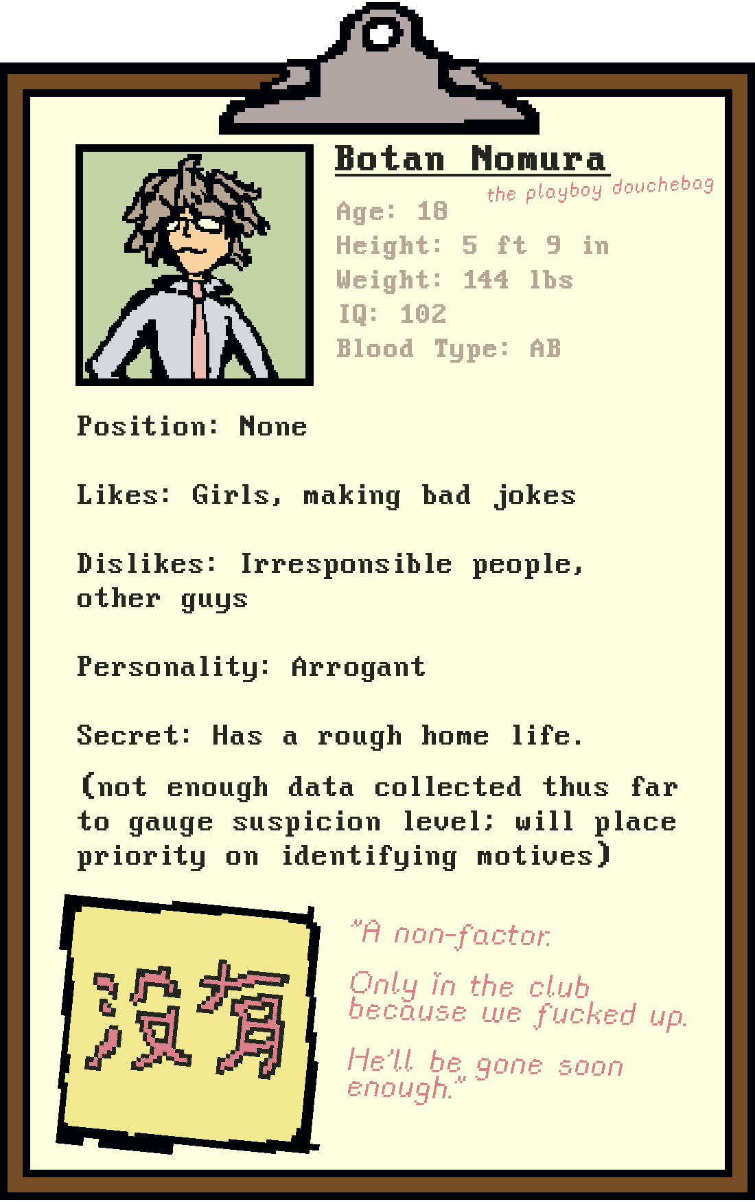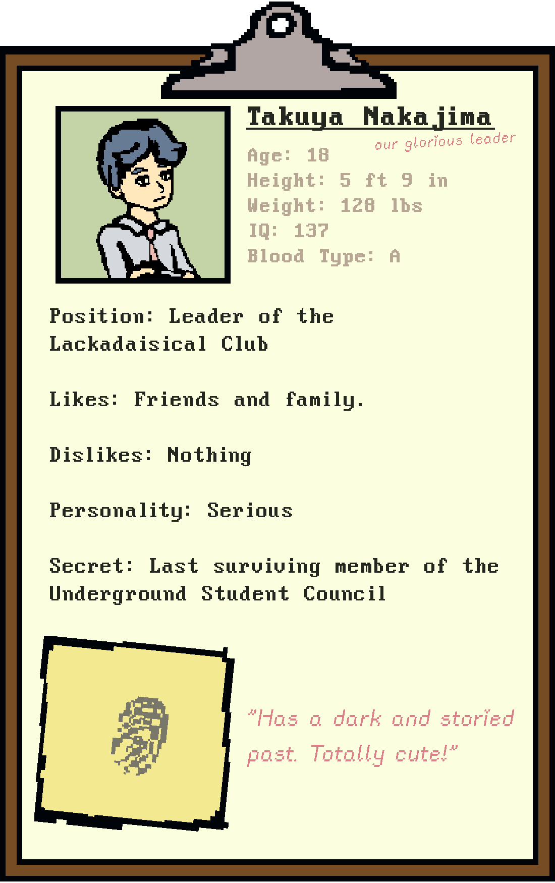 Dubbing it "The Lackadaisical Club," he hosts some of the most influential and troublesome students in the school, providing them a place relax and reorient... before they return to tyrannize the student populace.